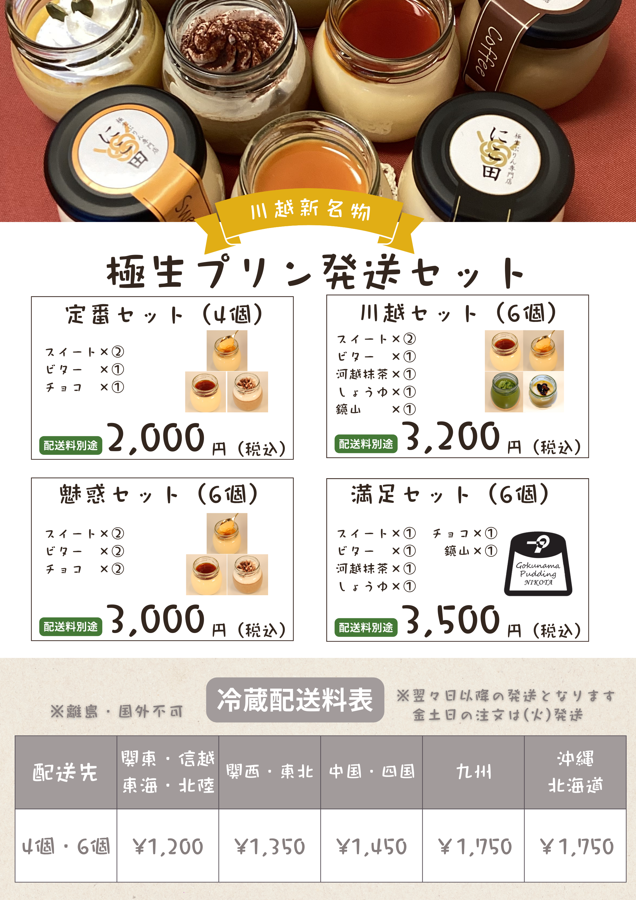 | 店舗名 | 川越極生ぷりん専門店 にこ田 |